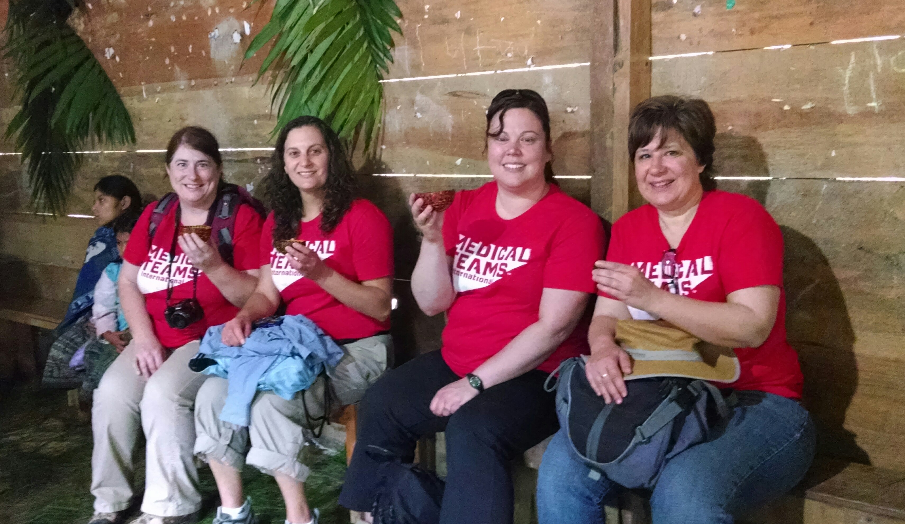Daisy, a darling little one who remembered some of the team  members from last year’s trip, crawled up on Mark’s lap and the community cheered that “Kush” as they called him, had returned.  Two little girls – Brenda and Blanca – sat next to me stroking my arm or taking turns holding my hand.  Staci was given someone’s baby to hold.  (She later said she thought this must be what it’s like to play Santa!)  Phil and Jean were surrounded by little kids who lavished them with love and attention: Jean appeared to be totally in her element and filling a role of every kid’s favorite gramma; Phil’s eyes continually glistened with tears.  Kendra’s heart jumped when she bonded with a little girl who happened to be wearing the same pajamas her own little girl has.