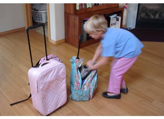 I sent Em to her room this morning for back talking. When she came out 10 minutes later, she was pulling a pink suitcase and said she was running away. I asked her to stay on Stonington Lane, and out the door with her suitcase she went. Roughly two minutes later, I stepped outside and saw her about two houses down. I hollered after her: “Breakfast is ready. You might want to eat something so you have strength for all the walking you’re going to do.”
