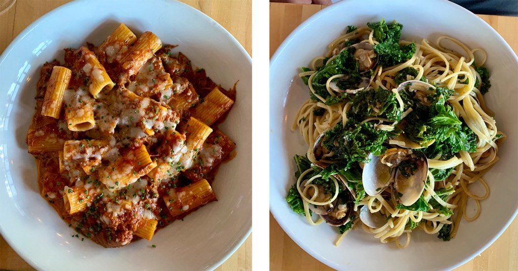 The maître D and hosts at Lodgepole know my husband by name and seat him in his favorite spot along the brick wall. But Lodgepole has done an amazing job creating beautiful outdoor spaces as well. And it doesn’t matter where you eat your meal, because the menu is phenomenal. We had the braised beef rigatoni with Cougar Gold cheese and the linguini with clams for the main course, following a tasty, fresh seeded bread with whipped honey butter. For dessert, a triple layer ice cream cake with a swipe of thick fudge and sea salt on the side. The Moscato from Willamette Valley and the espresso from Evans Brothers Coffee (Sandpoint) finished off desert with perfection.