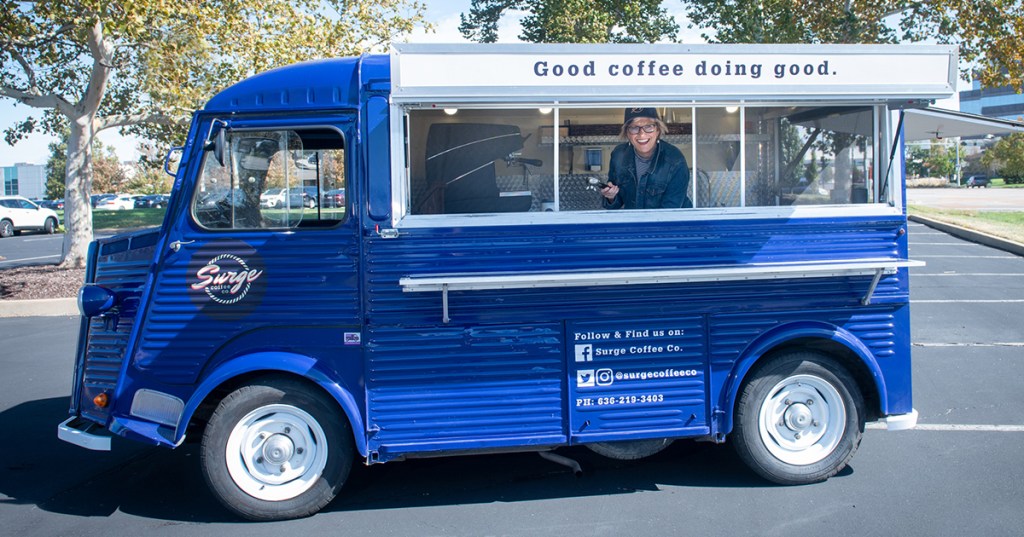 Genevieve and her owners, Bruce and Keri Munholand, make up Surge Coffee. The Munholands, who are newcomers to Spokane from St. Louis, put action behind their slogan, “Good Coffee Doing Good.”